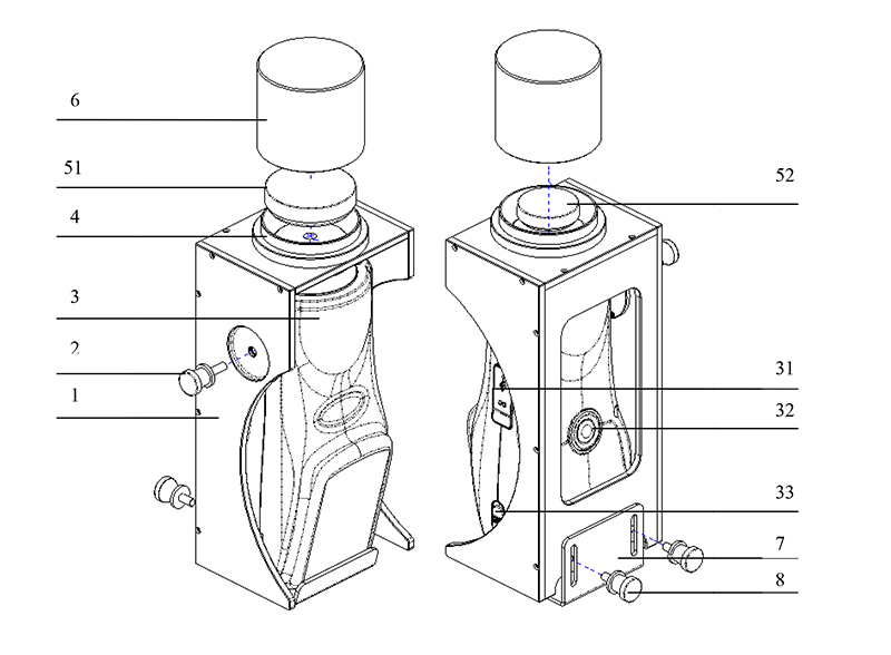 4、根據樣品特點,選取適當容量的樣品杯(Φ60mm樣品杯51、Φ35mm樣品杯52均可使用),將待測樣品放入樣品杯,然後將裝有待測樣品的樣品杯的放入黑腔內,蓋上黑腔蓋板6,按照測色儀的測試方法進行色度數據測量。