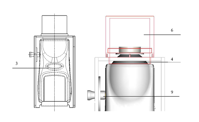 2、輕輕鬆開手擰螺絲8,使固定板7沿腰形孔可上下移動,使固定板7盡量處於下方位置;鬆開手擰螺釘2,使得手擰螺釘2的前端麵稍低於螺釘固定座9的端麵。