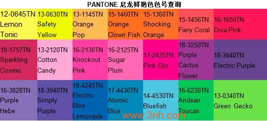 PANTONE nylon brights swatch card